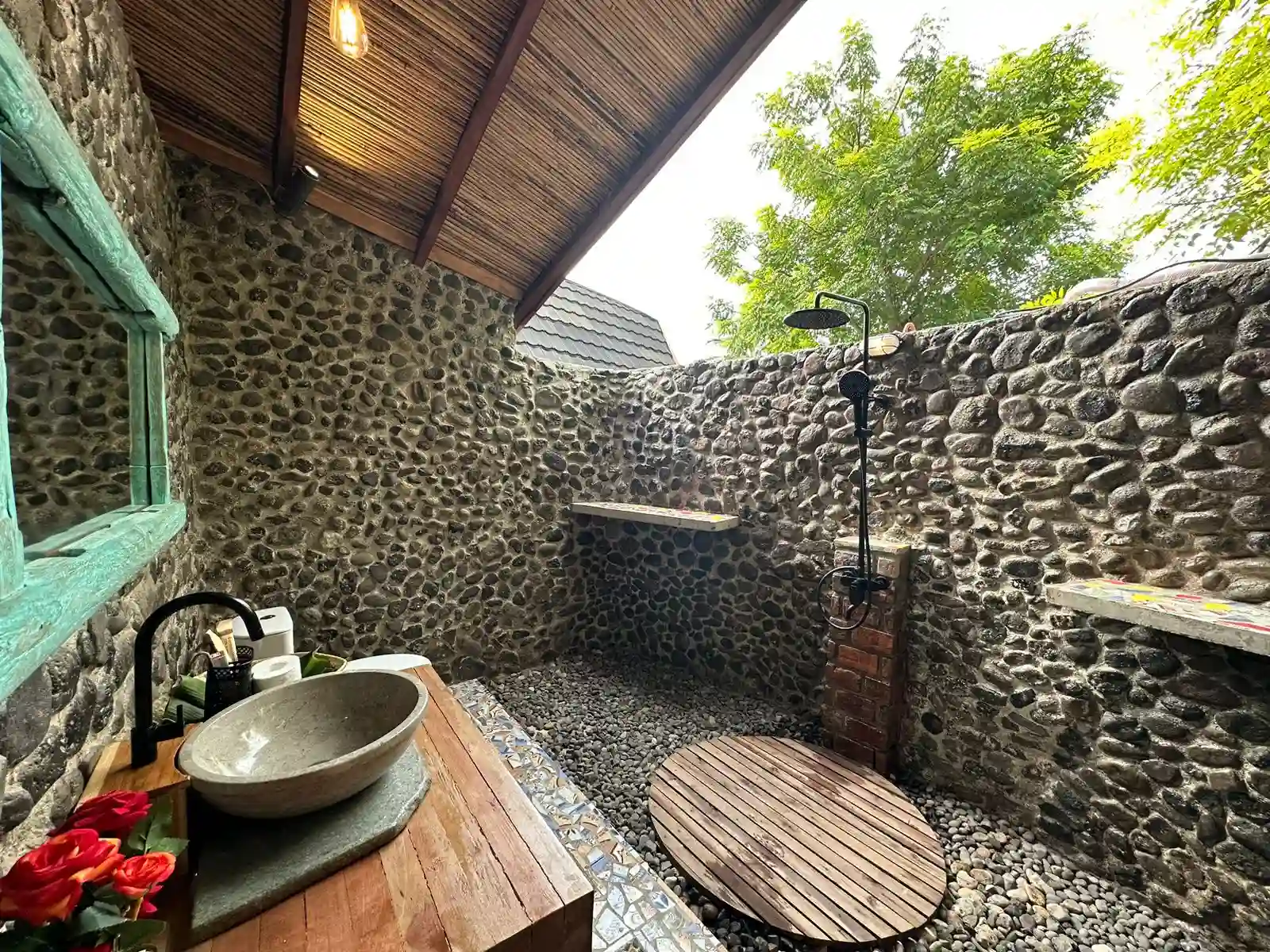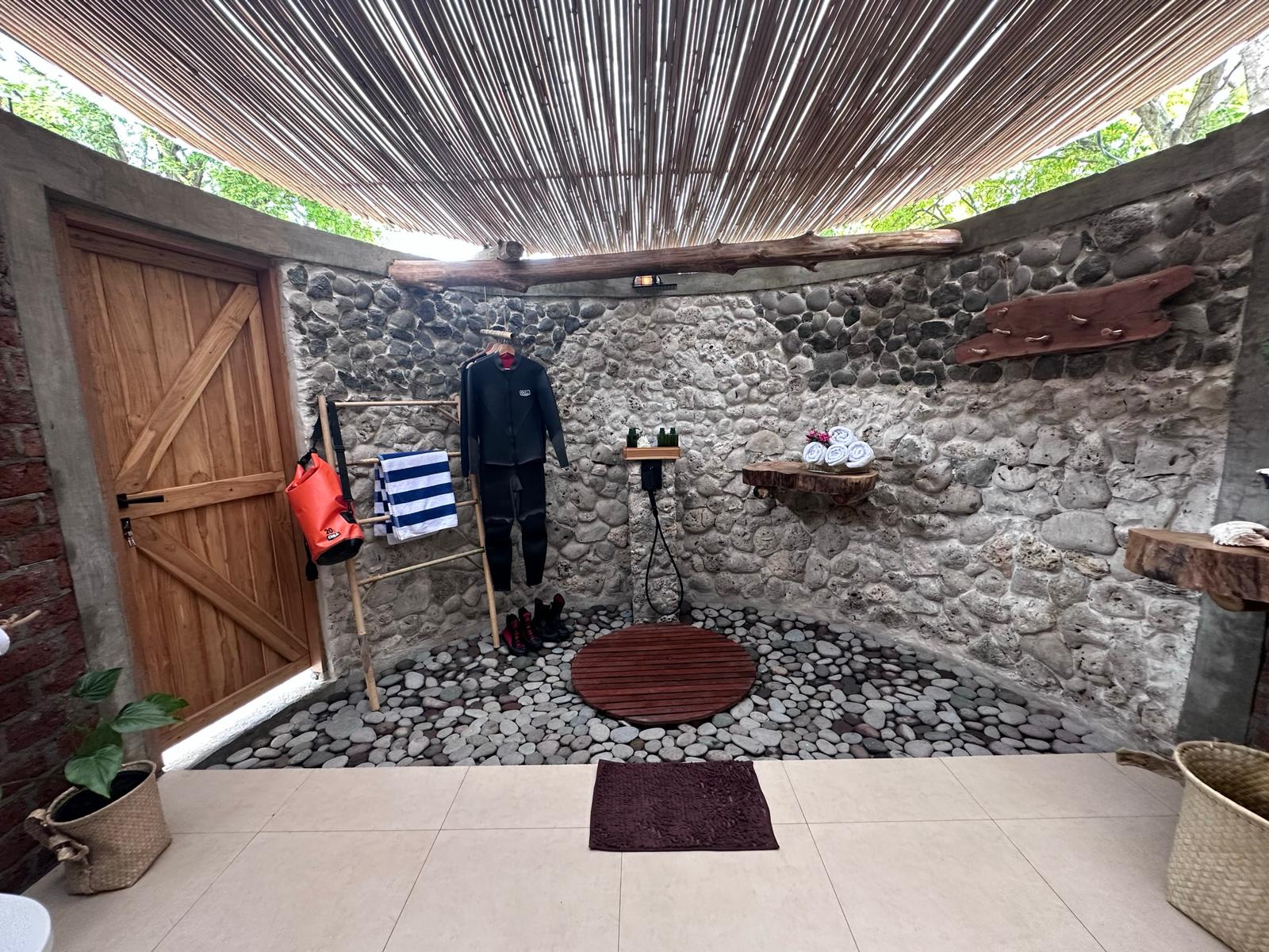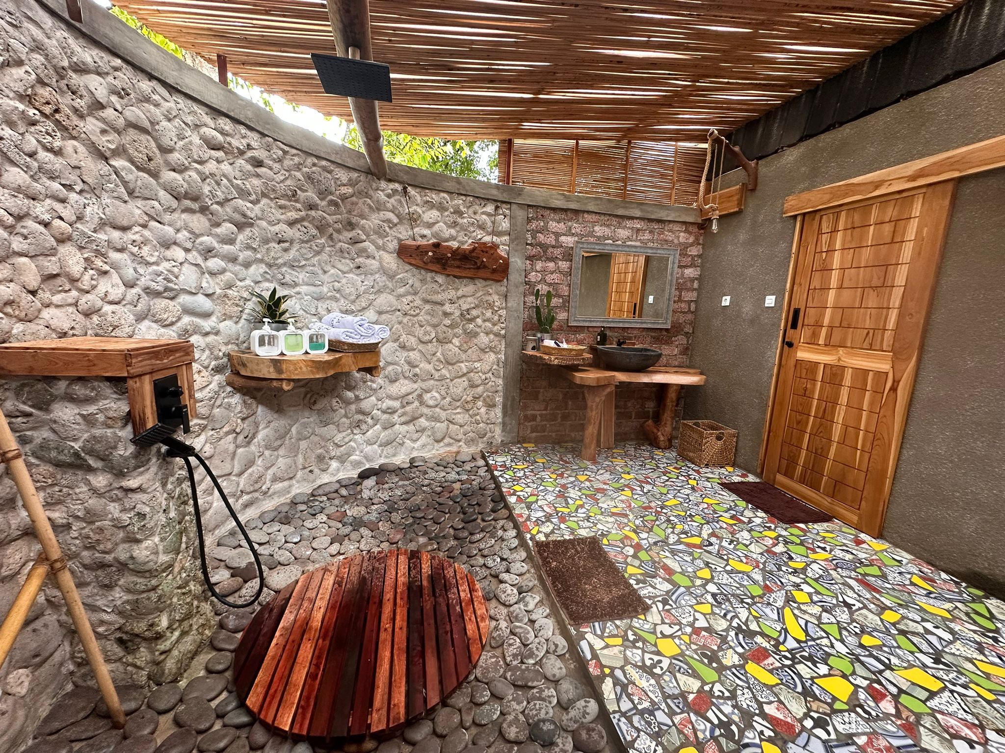 - Semi-open air bathrooms with hot water, offering a unique blend of tropical charm and modern comfort.